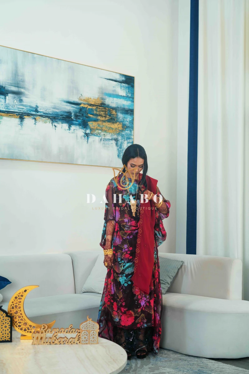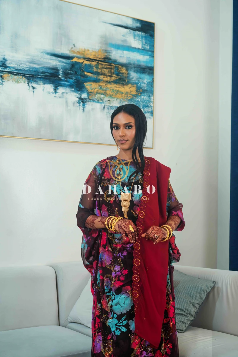 Haboon Mustard Harir Dirac Set Fabric- Radiate luxury Satin harir with stones and flower pattern. Complete set- dirac, gogorad (underskirt) and garbasar (shawl). Please inform us if you need tailoring service we offer tailoring services should you want your dirac set sewn (as seen pictured above) and ready to wear. Kindly select “TAILORED” provide your full height (cm) on the comments/notes section at checkout. Color: Mustard Size: Half Bac (109 cm width)