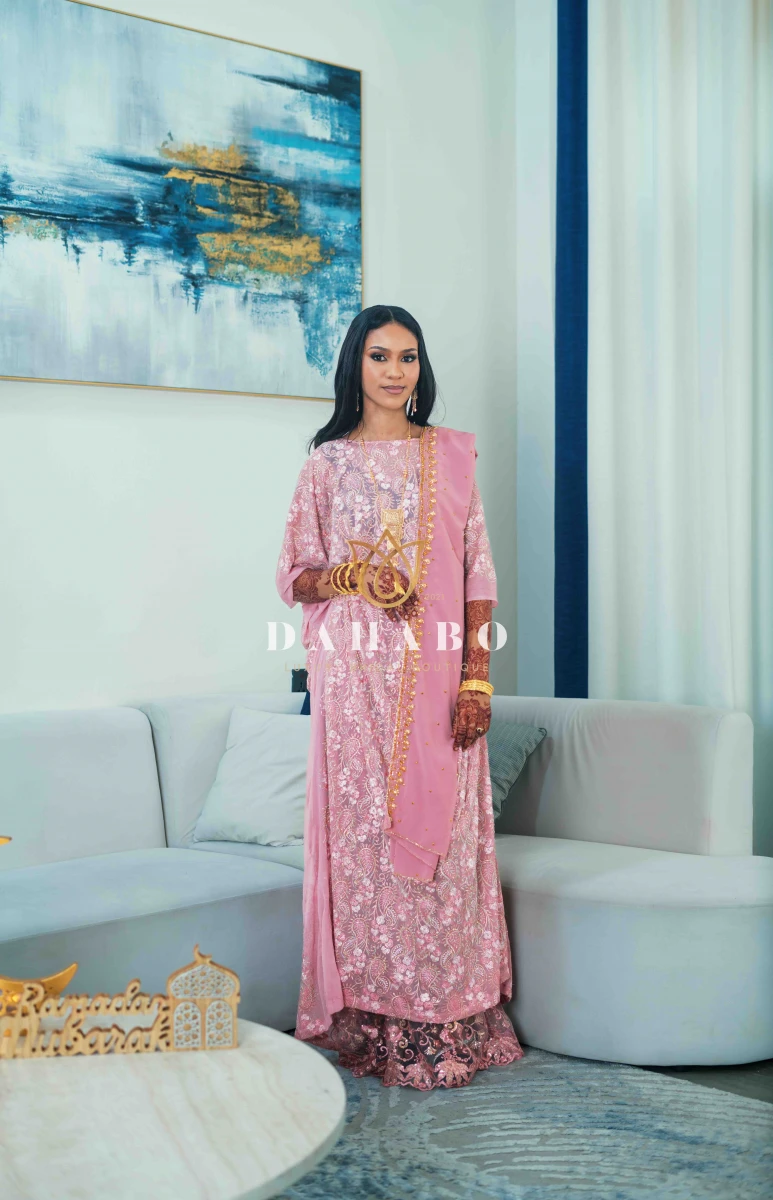 Hanifa Grey Dirac Set features : Fabric- Radiate luxury chiffon with stones and flower pattern. Complete set- dirac, gogorad (underskirt) and garbasar (shawl). Please inform us if you need tailoring service we offer tailoring services should you want your dirac set sewn (as seen pictured above) and ready to wear. Kindly select “TAILORED” provide your full height (cm) on the comments/notes section at checkout. Color: Black & Grey Size: Bacwayne (150 cm width)