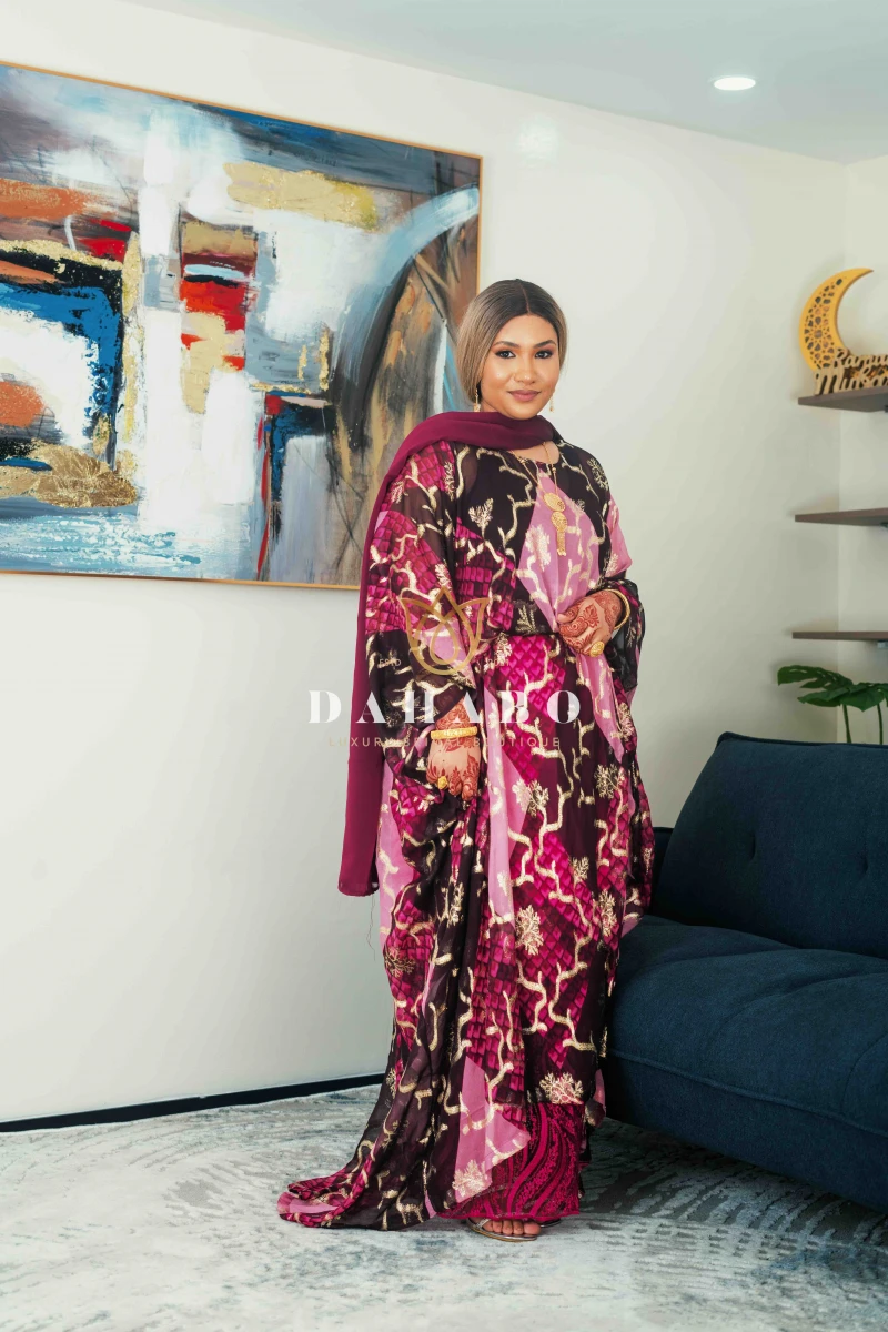 Hibo Fransawi Dirac Feature: Fabric- Radiate luxury chiffon with shimmer patterns. Complete set- dirac, gogorad (underskirt) and garbasar (shawl). Please inform us if you need tailoring service we offer tailoring services should you want your dirac set sewn (as seen pictured above) and ready to wear. Kindly select “TAILORED” or UNTAILORED” provide your full height (cm) on the comments/notes section at checkout. Color: Lime Size: Bacwayne (150 cm width)