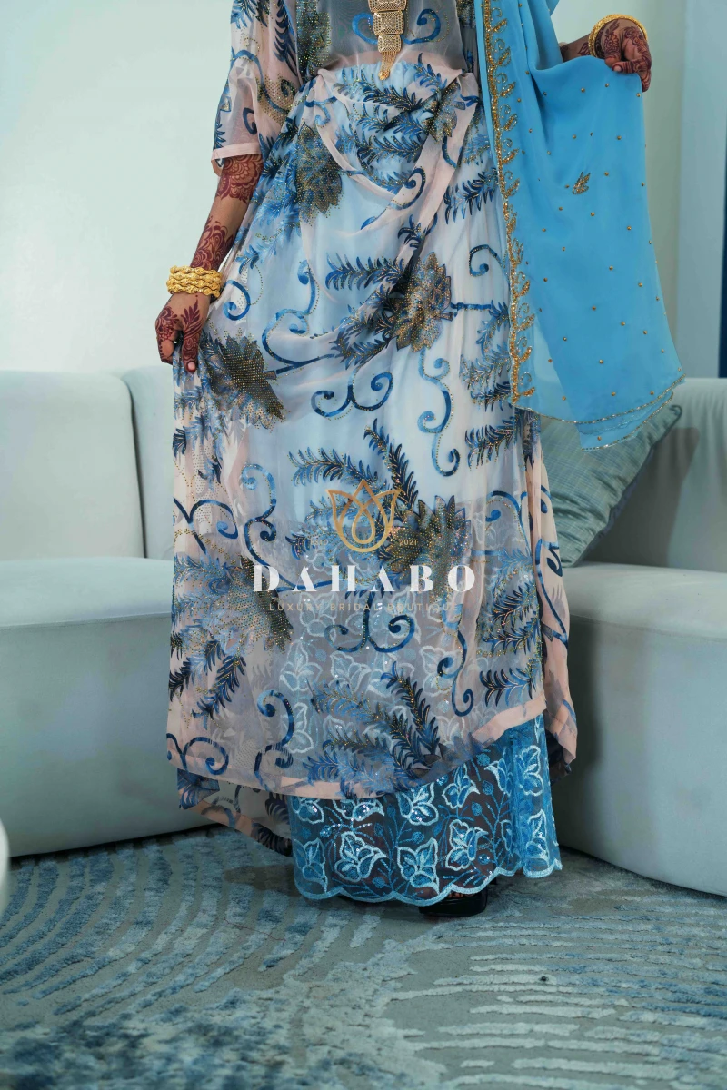 The Hillac Dirac Set features : Fabric- Radiate luxury Satin harir with stones and flower pattern. Complete set- dirac, gogorad (underskirt) and garbasar (shawl). Please inform us if you need tailoring service we offer tailoring services should you want your dirac set sewn (as seen pictured above) and ready to wear. Kindly select “TAILORED” provide your full height (cm) on the comments/notes section at checkout. Color: Dusty PinkSize: Half Bac (109 cm width)