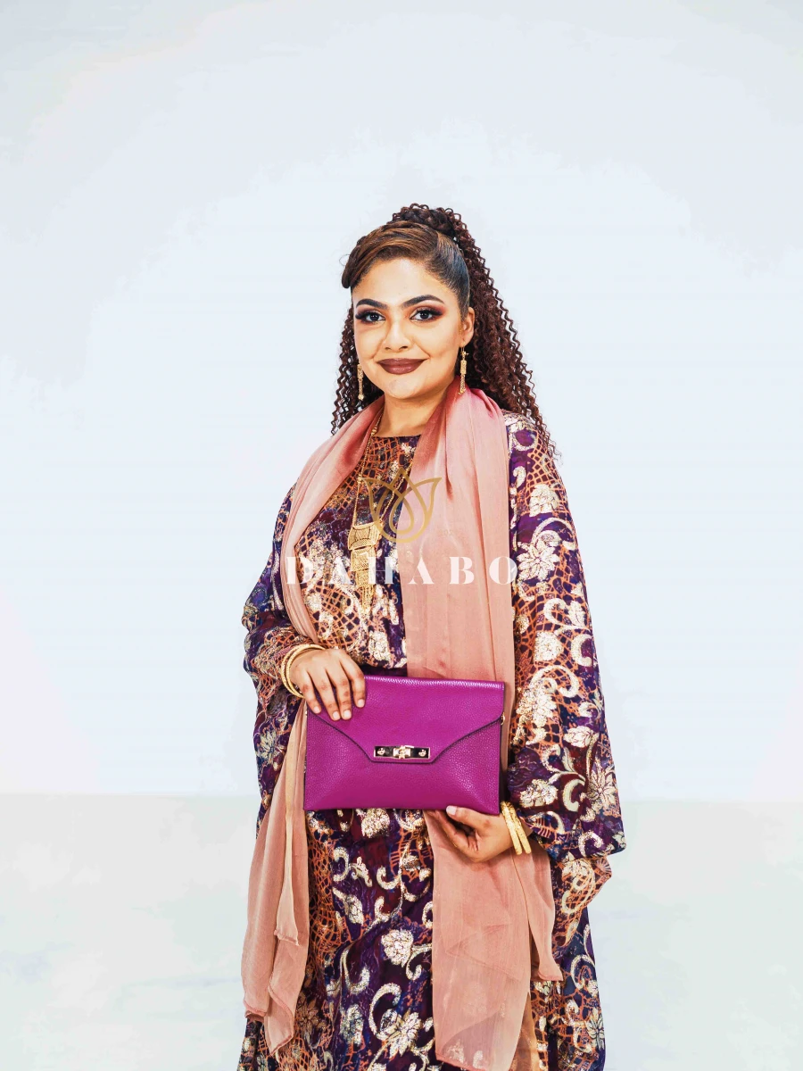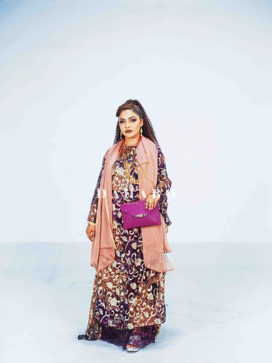 The Jamaad Dirac set features : Fabric- Radiate luxury chiffon with shimmer patterns. Complete set- dirac, gogorad (underskirt) and garbasar (shawl). Please inform us if you need tailoring service we offer tailoring services should you want your dirac set sewn (as seen pictured above) and ready to wear. Kindly select “TAILORED” provide your full height (cm) on the comments/notes section at checkout. Color: Lavender Size: Half Bac (109 cm width)